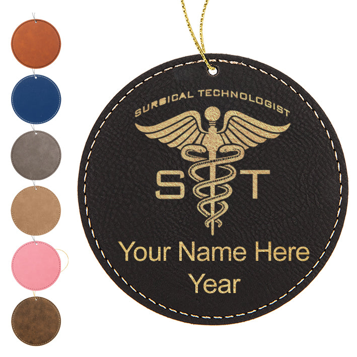 LaserGram Christmas Ornament, ST Surgical Technologist, Personalized Engraving Included (Faux Leather, Round Shape)