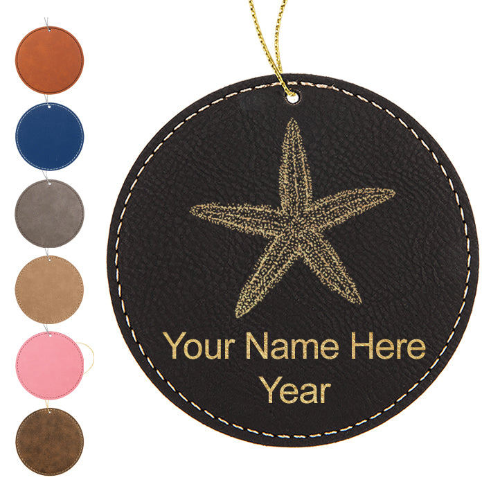 LaserGram Christmas Ornament, Starfish, Personalized Engraving Included (Faux Leather, Round Shape)