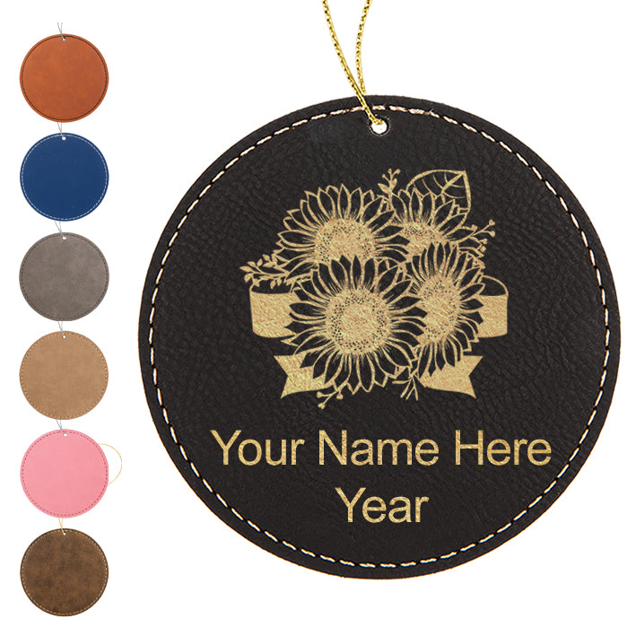LaserGram Christmas Ornament, Sunflowers, Personalized Engraving Included (Faux Leather, Round Shape)