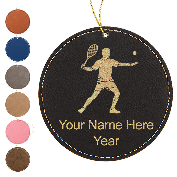 LaserGram Christmas Ornament, Tennis Player Man, Personalized Engraving Included (Faux Leather, Round Shape)