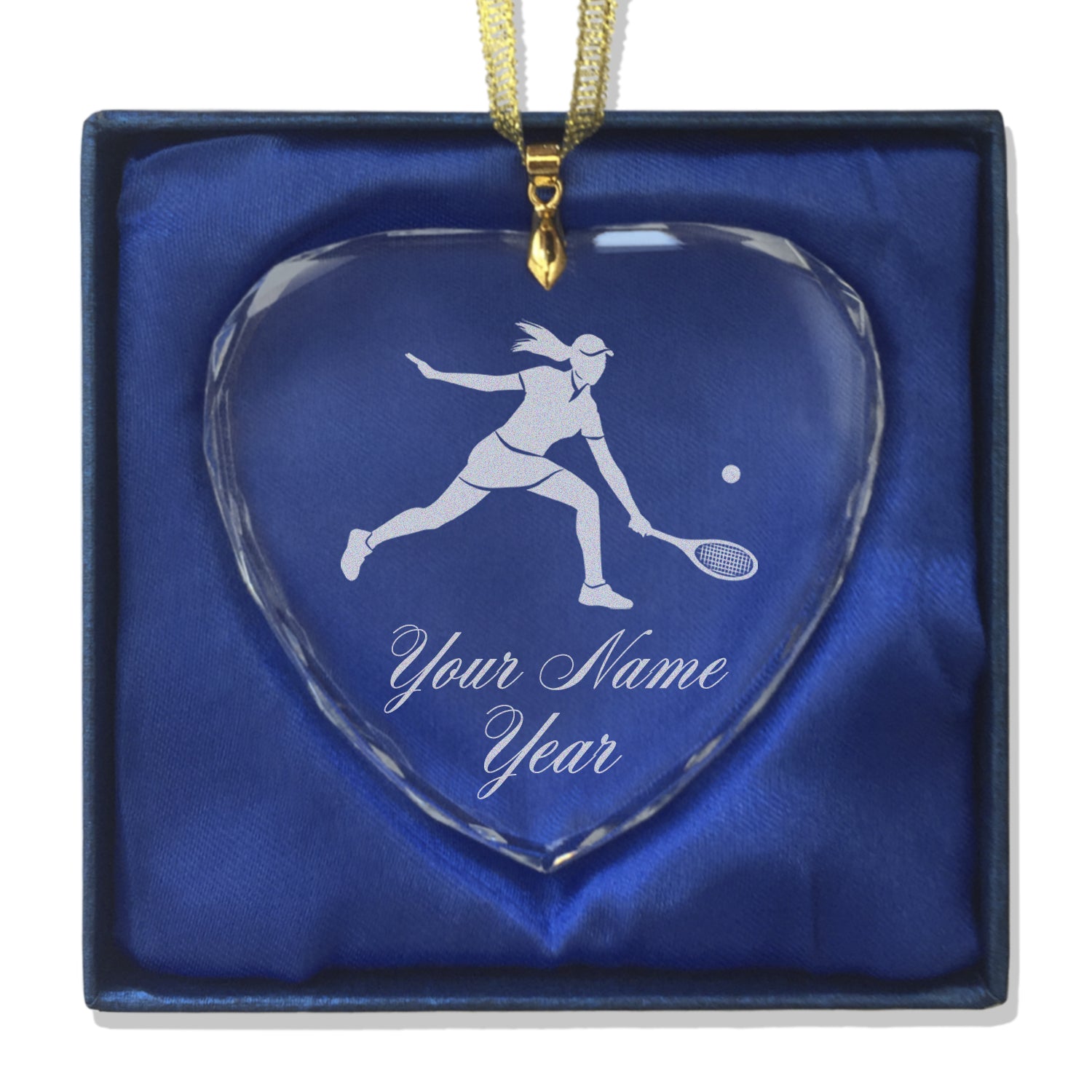 LaserGram Christmas Ornament, Tennis Player Woman, Personalized Engraving Included (Heart Shape)