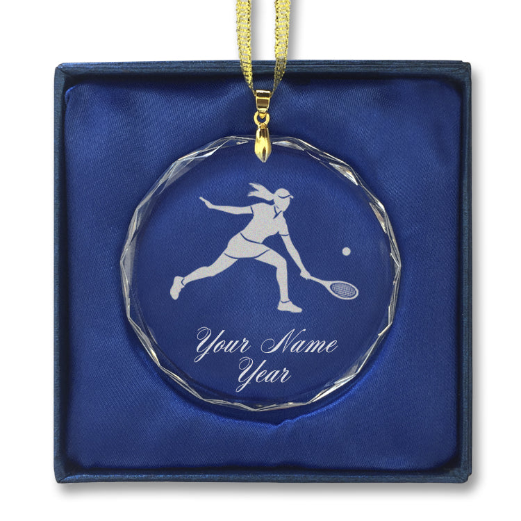 LaserGram Christmas Ornament, Tennis Player Woman, Personalized Engraving Included (Round Shape)