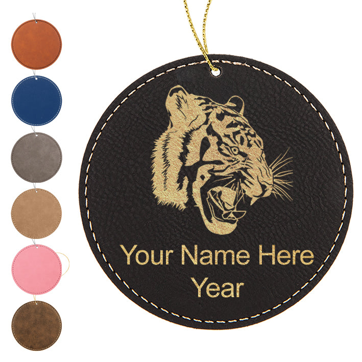 LaserGram Christmas Ornament, Tiger Head, Personalized Engraving Included (Faux Leather, Round Shape)