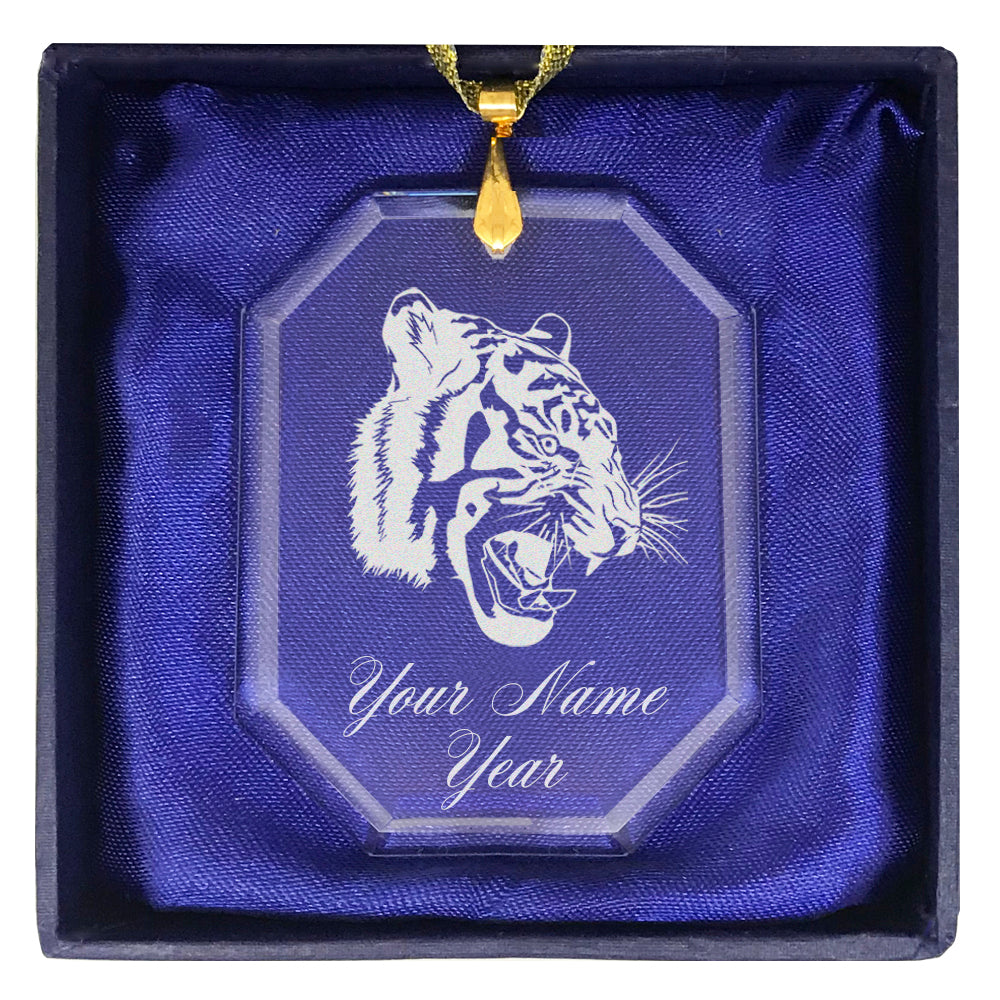 LaserGram Christmas Ornament, Tiger Head, Personalized Engraving Included (Rectangle Shape)