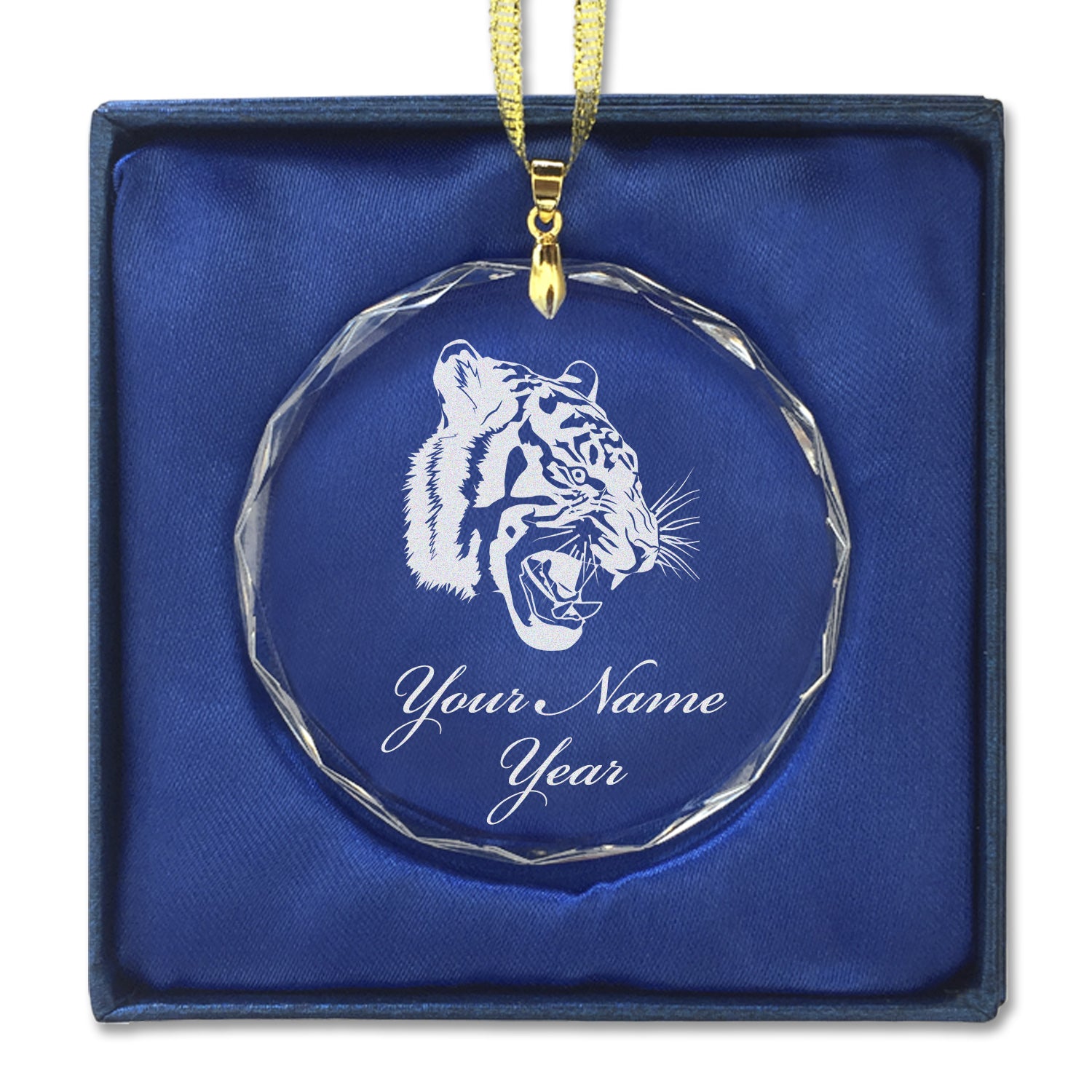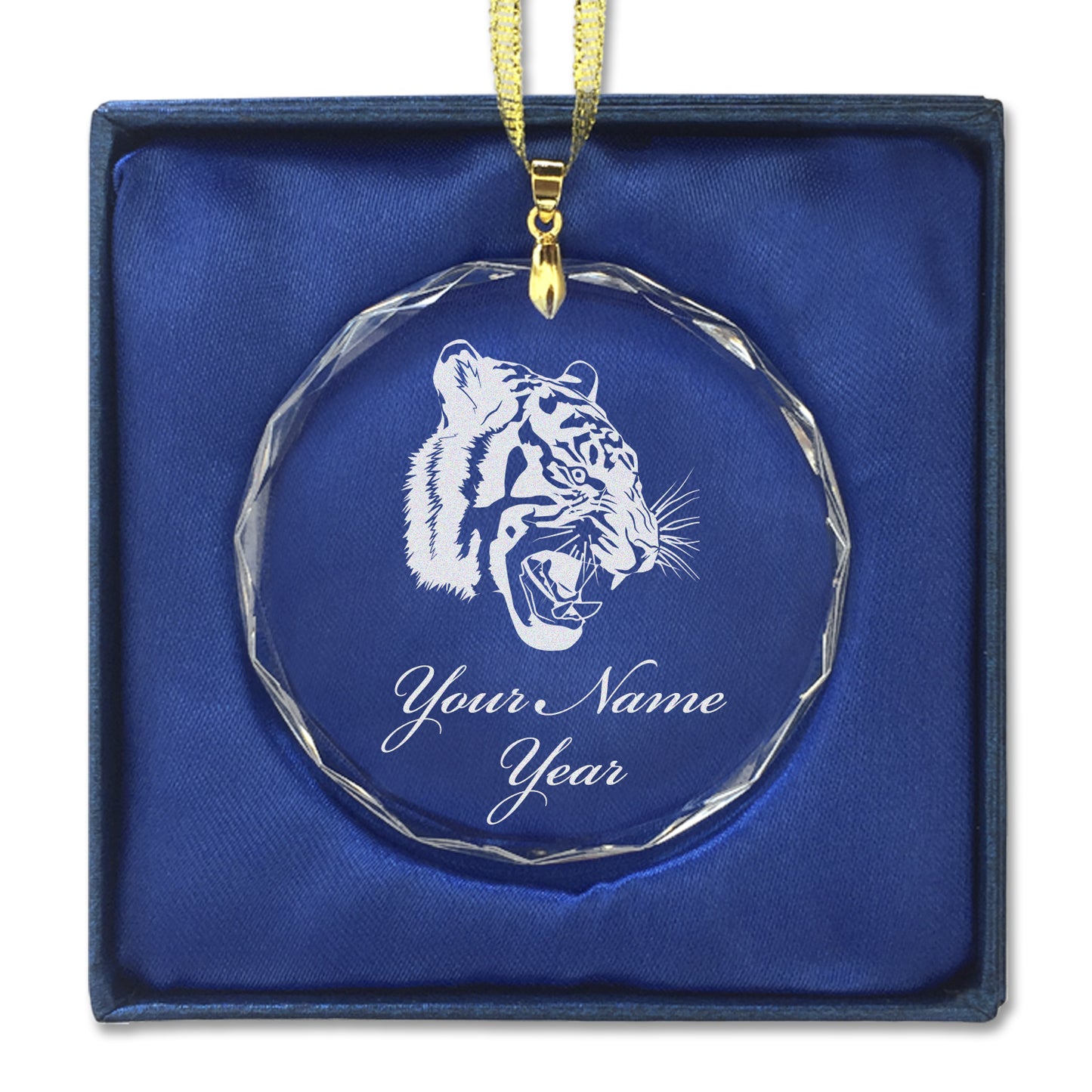 LaserGram Christmas Ornament, Tiger Head, Personalized Engraving Included (Round Shape)