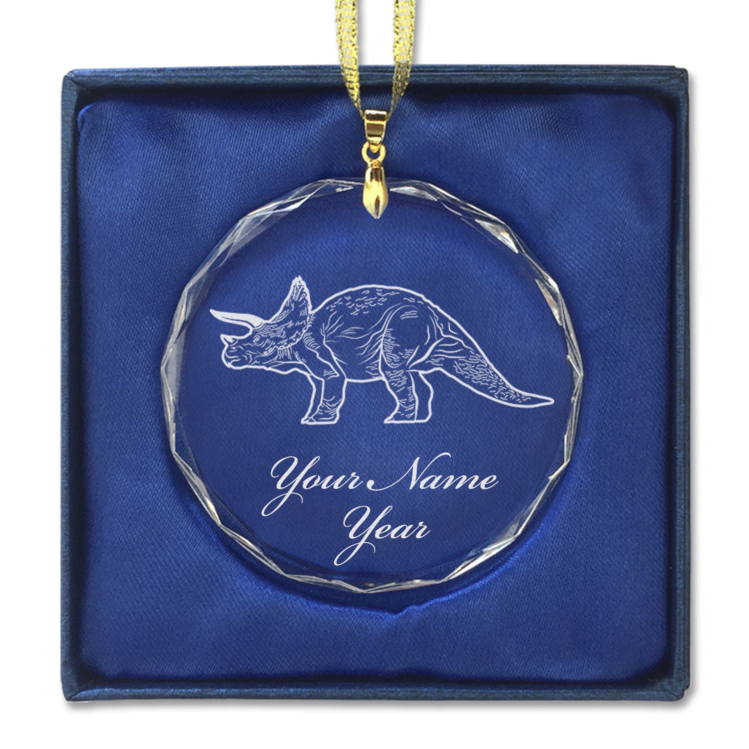 LaserGram Christmas Ornament, Triceratops Dinosaur, Personalized Engraving Included (Round Shape)