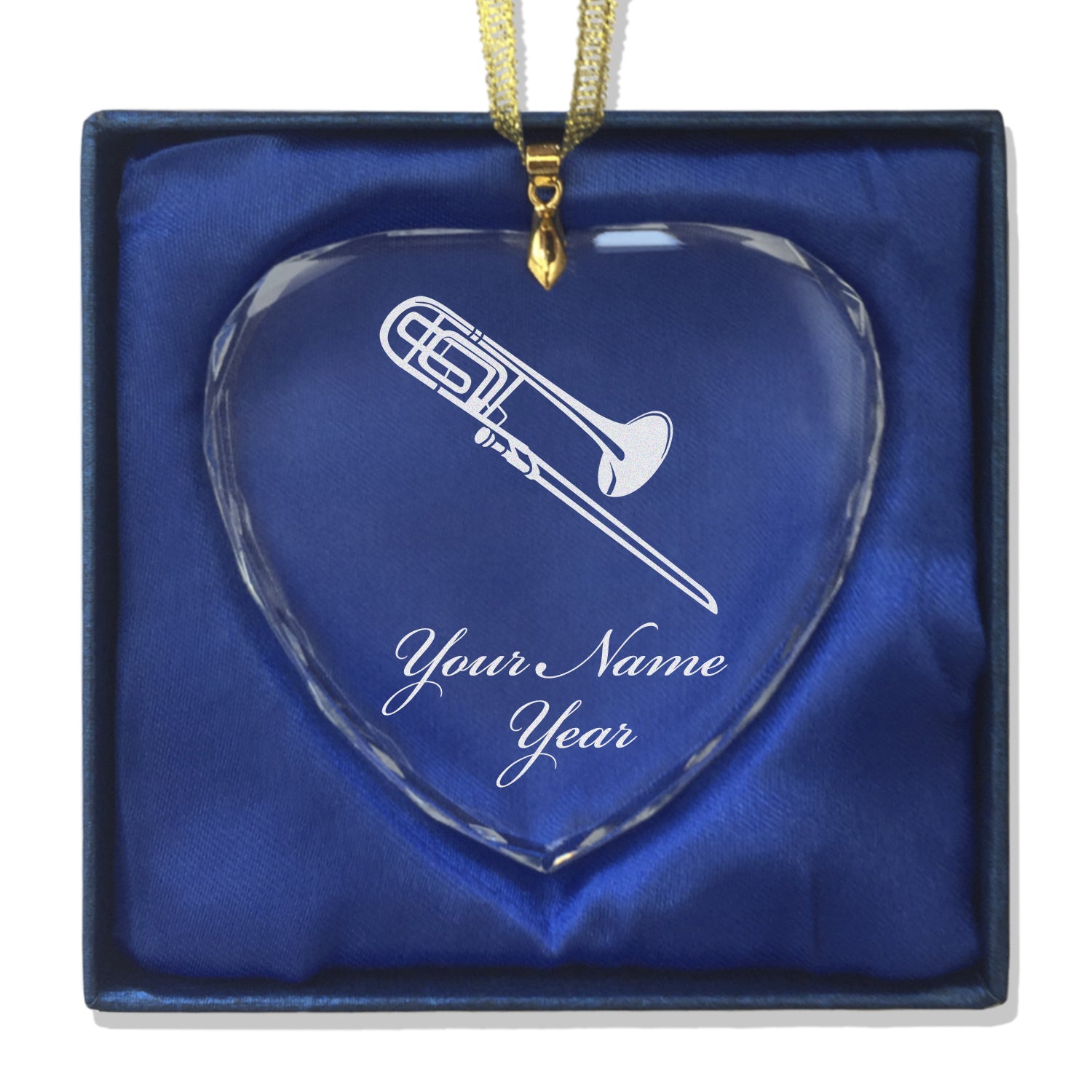 LaserGram Christmas Ornament, Trombone, Personalized Engraving Included (Heart Shape)