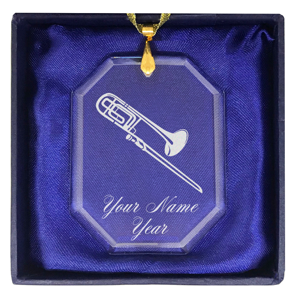 LaserGram Christmas Ornament, Trombone, Personalized Engraving Included (Rectangle Shape)
