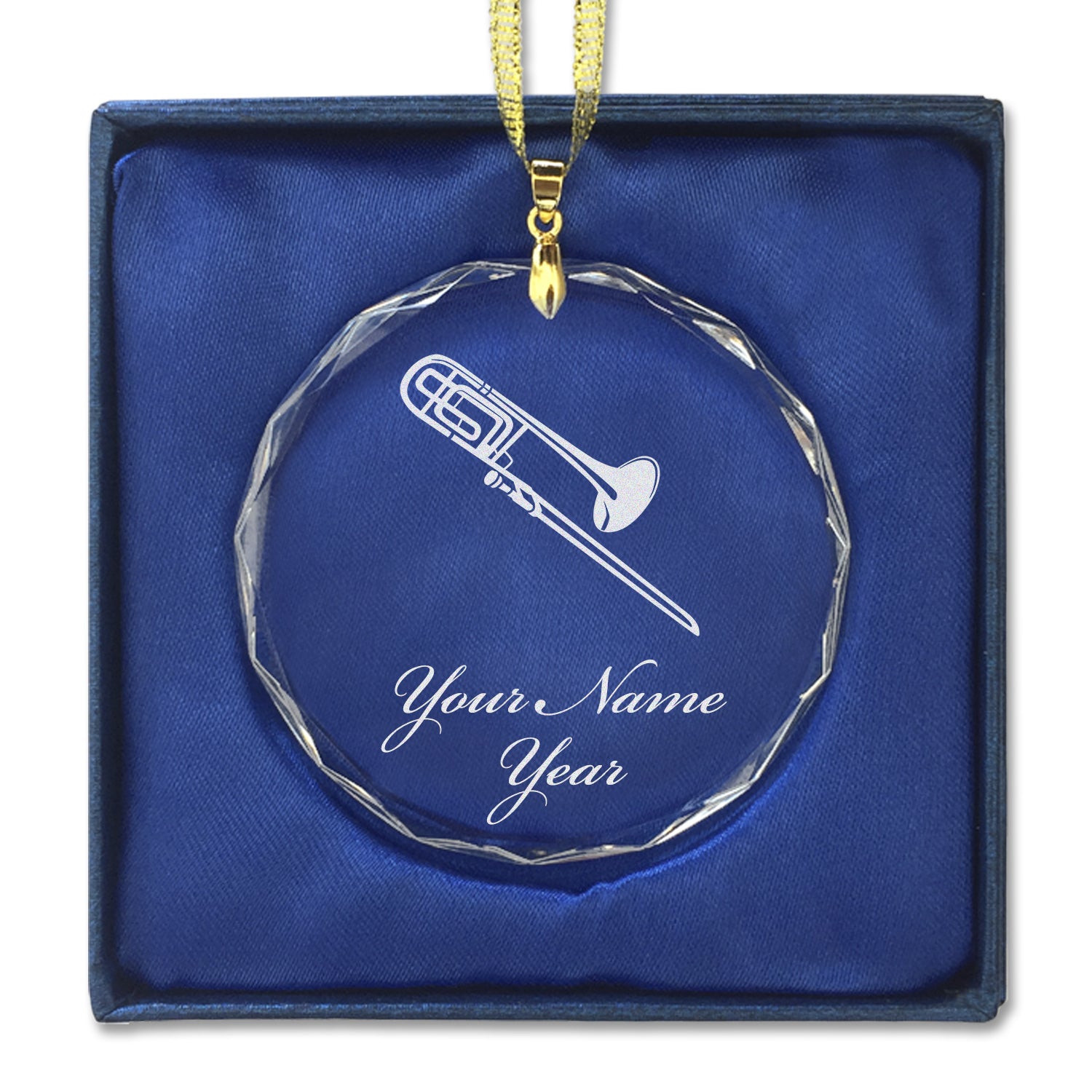 LaserGram Christmas Ornament, Trombone, Personalized Engraving Included (Round Shape)