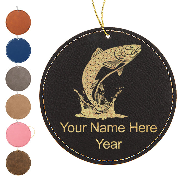 LaserGram Christmas Ornament, Trout Fish, Personalized Engraving Included (Faux Leather, Round Shape)