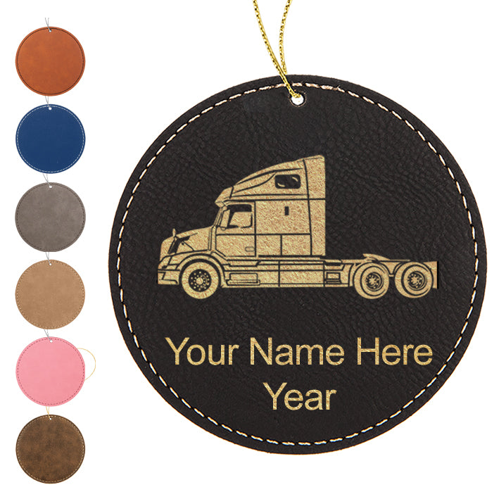 LaserGram Christmas Ornament, Truck Cab, Personalized Engraving Included (Faux Leather, Round Shape)