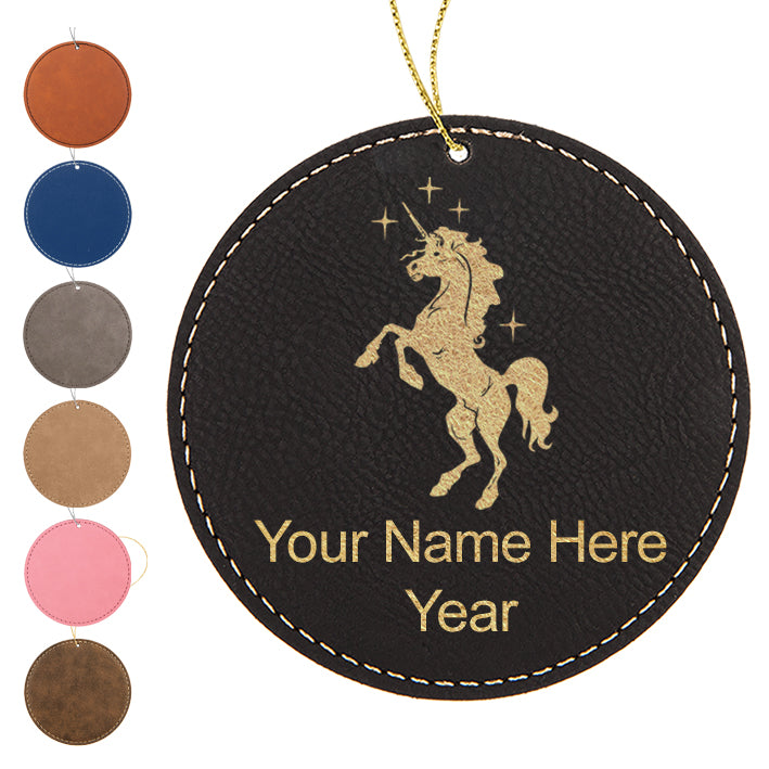 LaserGram Christmas Ornament, Unicorn, Personalized Engraving Included (Faux Leather, Round Shape)