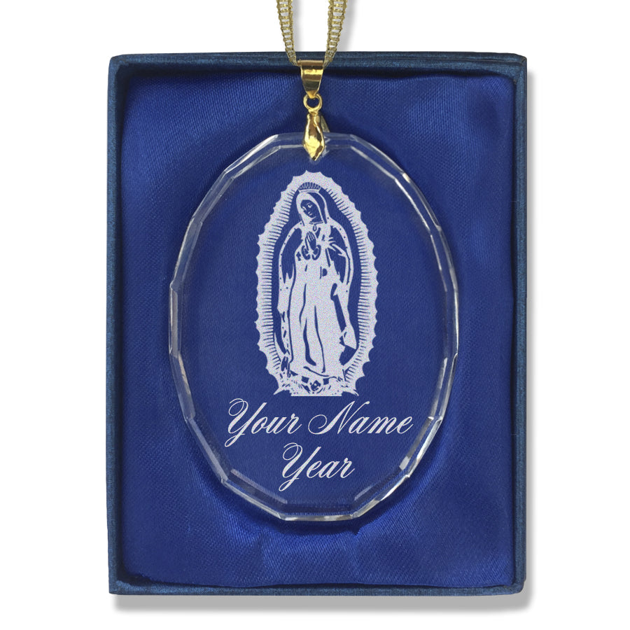 LaserGram Christmas Ornament, Virgen de Guadalupe, Personalized Engraving Included (Oval Shape)