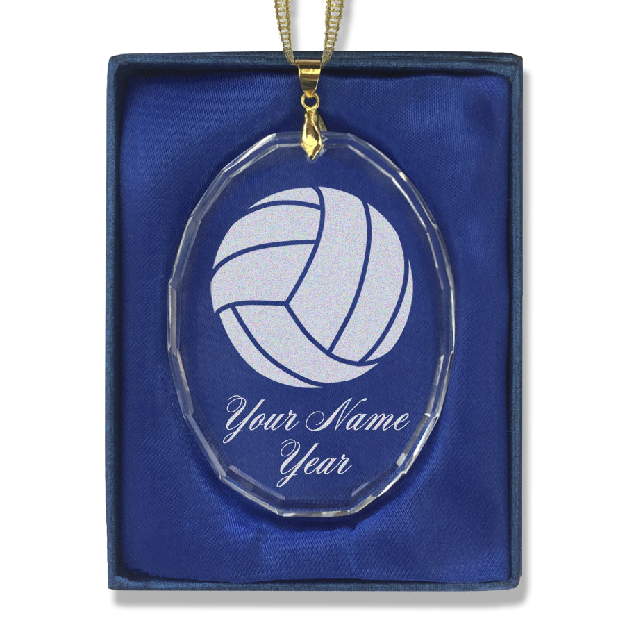 LaserGram Christmas Ornament, Volleyball Ball, Personalized Engraving Included (Oval Shape)