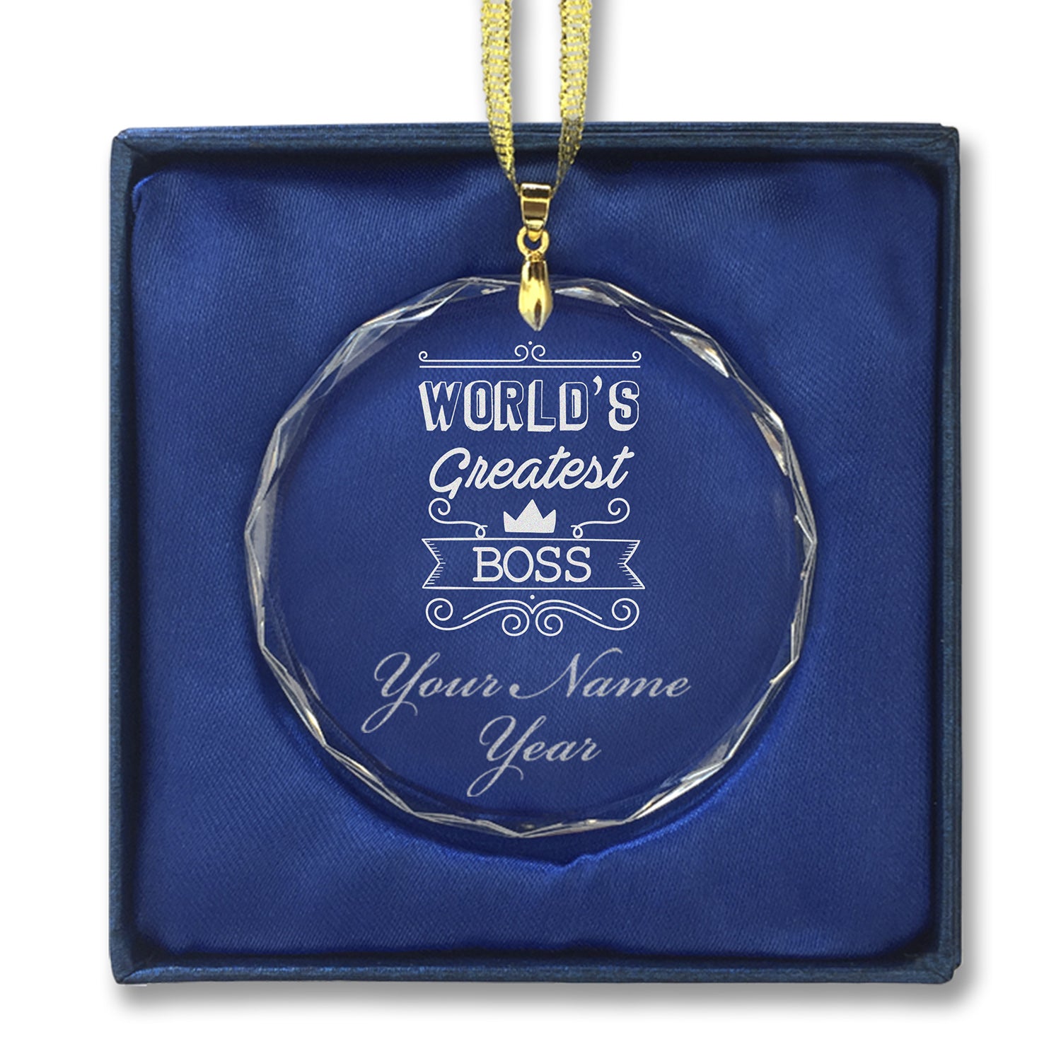 LaserGram Christmas Ornament, World's Greatest Boss, Personalized Engraving Included (Round Shape)