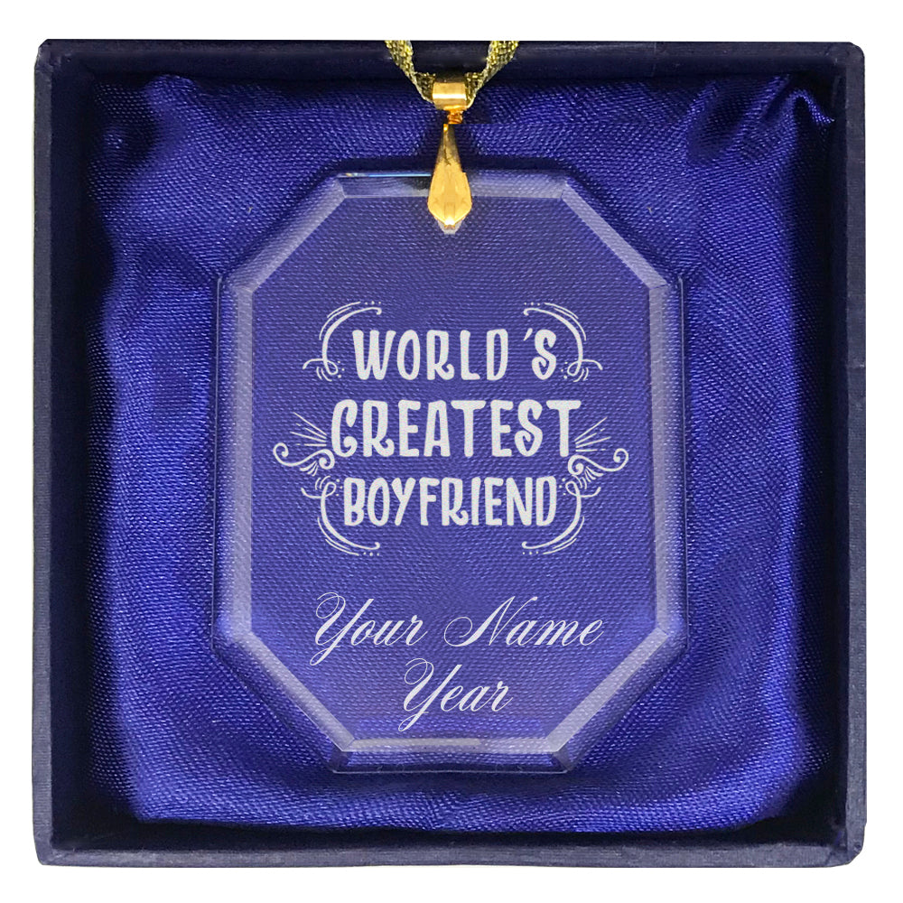 LaserGram Christmas Ornament, World's Greatest Boyfriend, Personalized Engraving Included (Rectangle Shape)