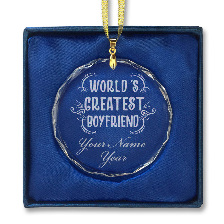 LaserGram Christmas Ornament, World's Greatest Boyfriend, Personalized Engraving Included (Round Shape)