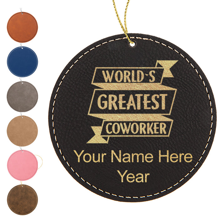 LaserGram Christmas Ornament, World's Greatest Coworker, Personalized Engraving Included (Faux Leather, Round Shape)