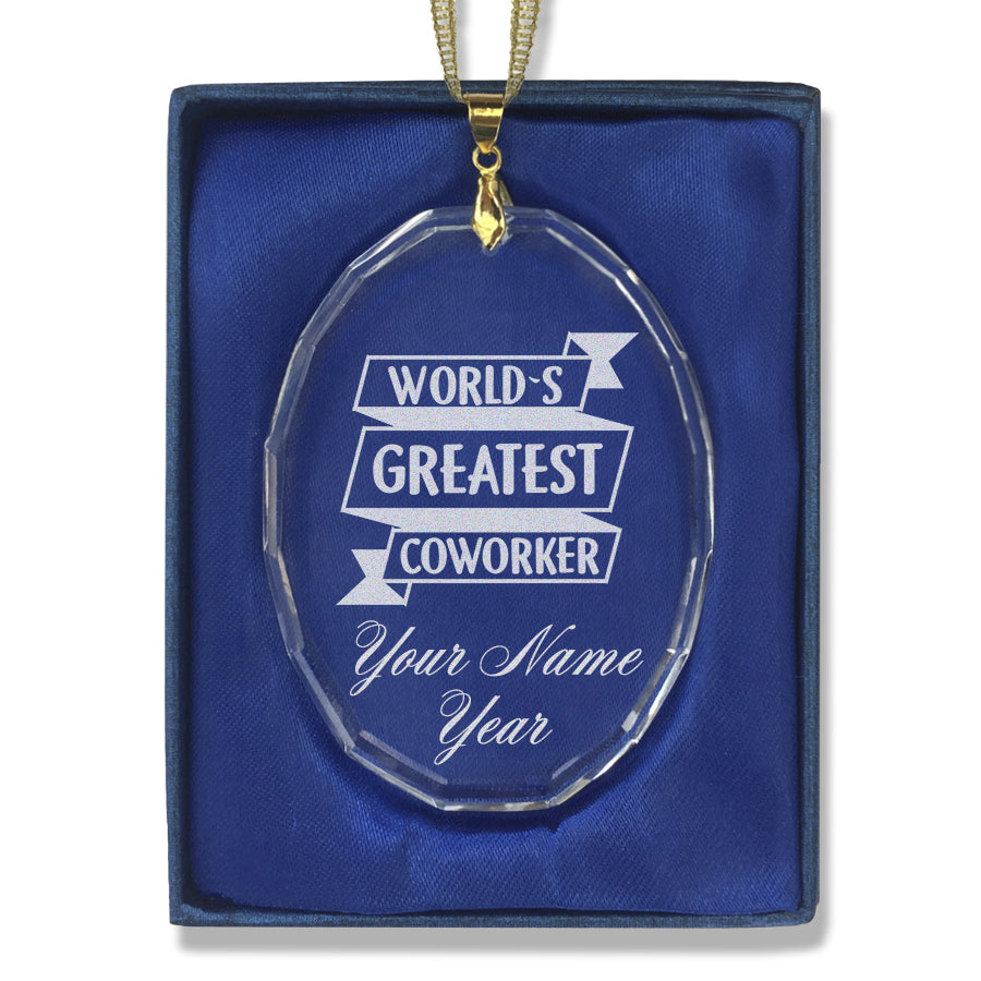LaserGram Christmas Ornament, World's Greatest Coworker, Personalized Engraving Included (Oval Shape)
