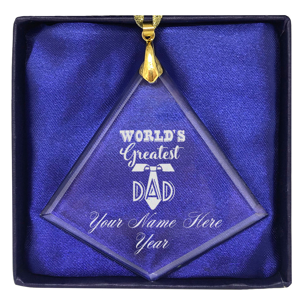 LaserGram Christmas Ornament, World's Greatest Dad, Personalized Engraving Included (Diamond Shape)