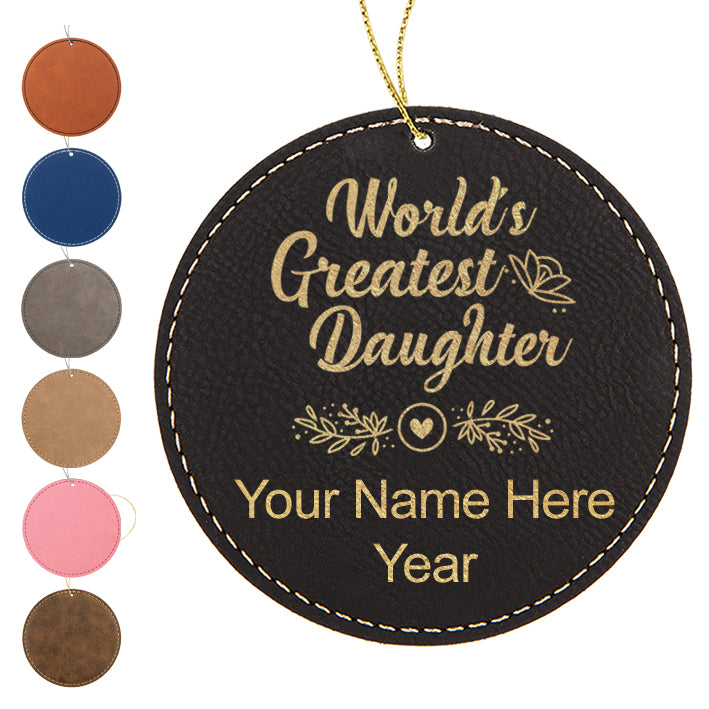 LaserGram Christmas Ornament, World's Greatest Daughter, Personalized Engraving Included (Faux Leather, Round Shape)