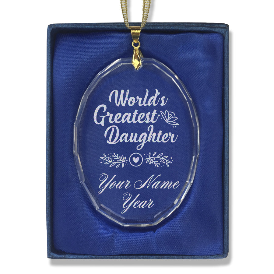 LaserGram Christmas Ornament, World's Greatest Daughter, Personalized Engraving Included (Oval Shape)