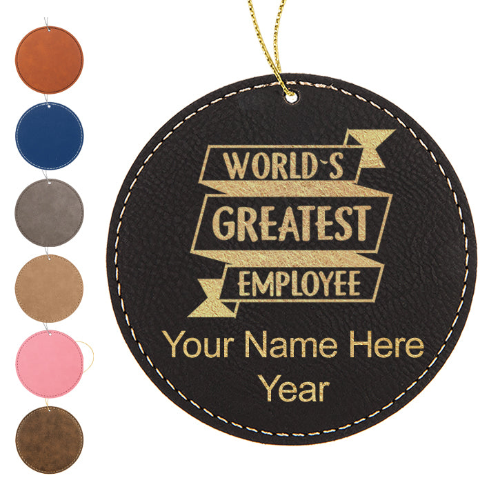 LaserGram Christmas Ornament, World's Greatest Employee, Personalized Engraving Included (Faux Leather, Round Shape)