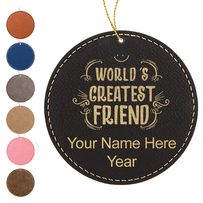 LaserGram Christmas Ornament, World's Greatest Friend, Personalized Engraving Included (Faux Leather, Round Shape)