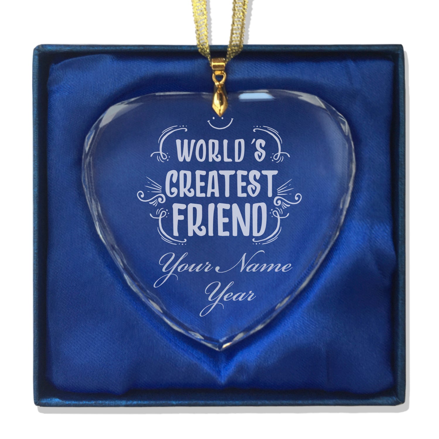 LaserGram Christmas Ornament, World's Greatest Friend, Personalized Engraving Included (Heart Shape)