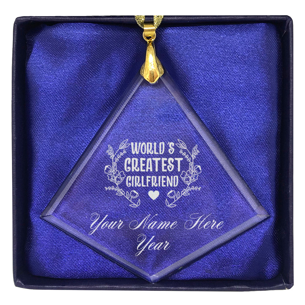 LaserGram Christmas Ornament, World's Greatest Girlfriend, Personalized Engraving Included (Diamond Shape)