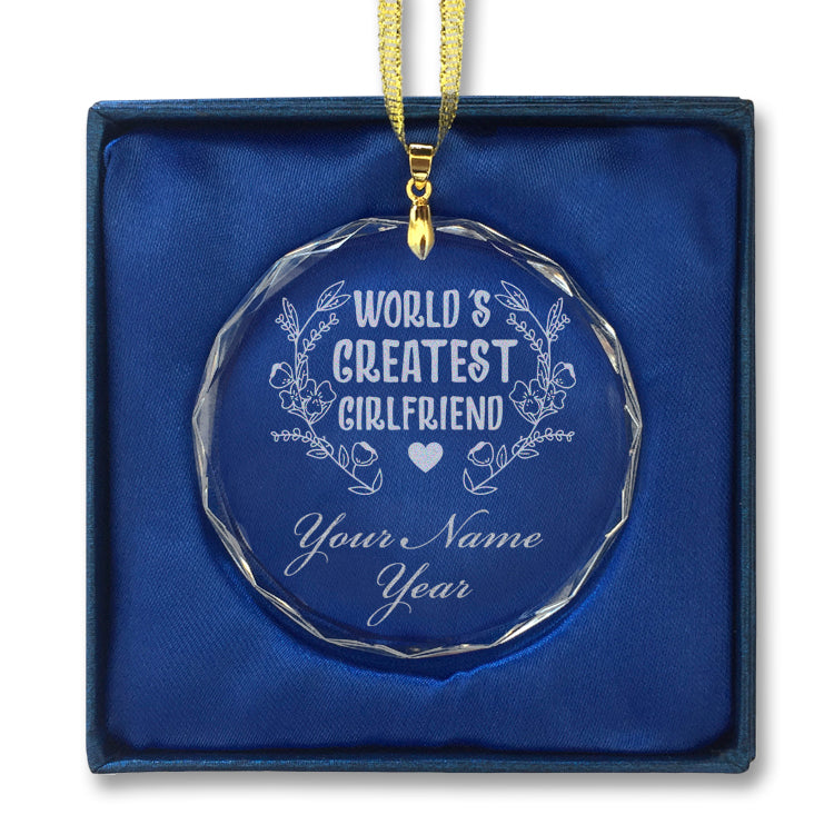 LaserGram Christmas Ornament, World's Greatest Girlfriend, Personalized Engraving Included (Round Shape)