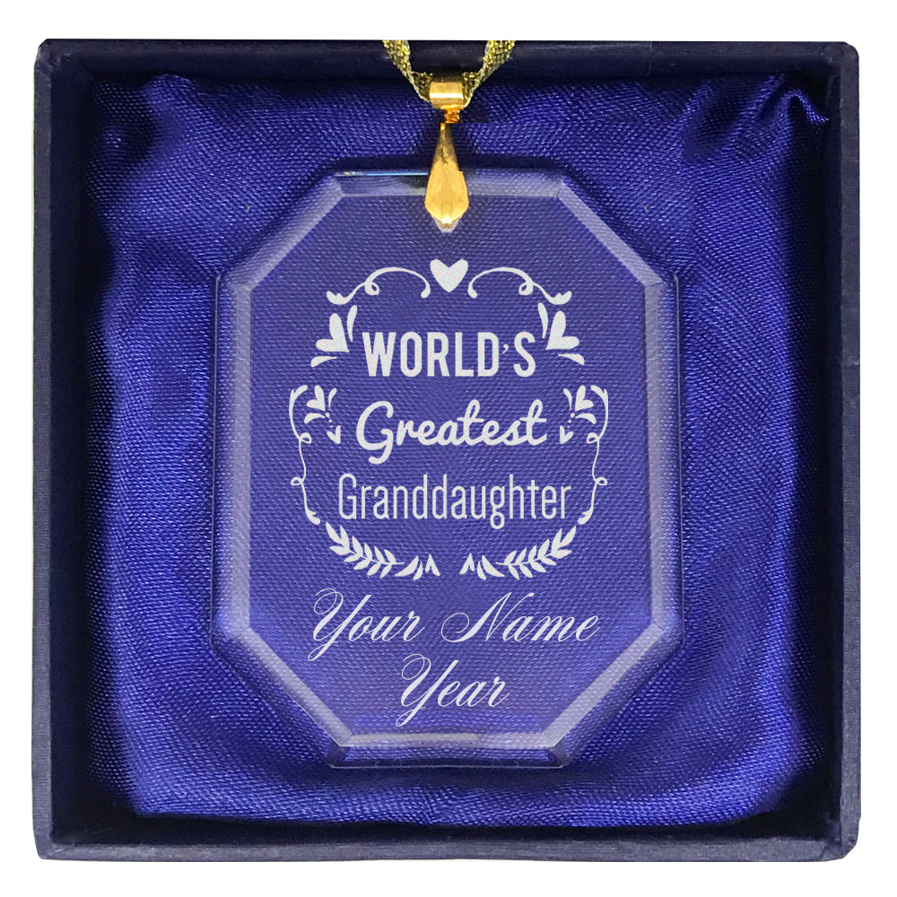 LaserGram Christmas Ornament, World's Greatest Granddaughter, Personalized Engraving Included (Rectangle Shape)