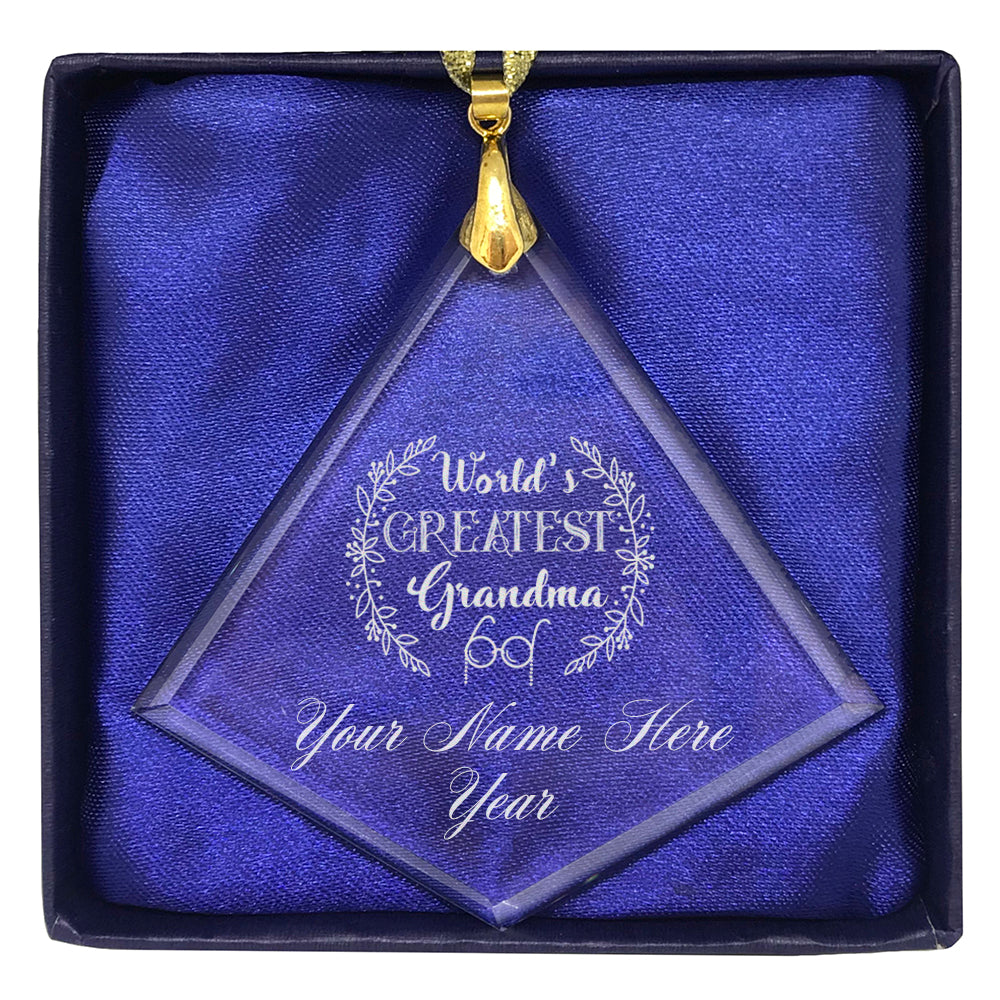 LaserGram Christmas Ornament, World's Greatest Grandma, Personalized Engraving Included (Diamond Shape)