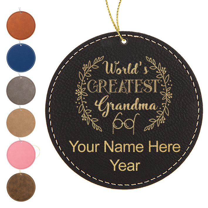 LaserGram Christmas Ornament, World's Greatest Grandma, Personalized Engraving Included (Faux Leather, Round Shape)