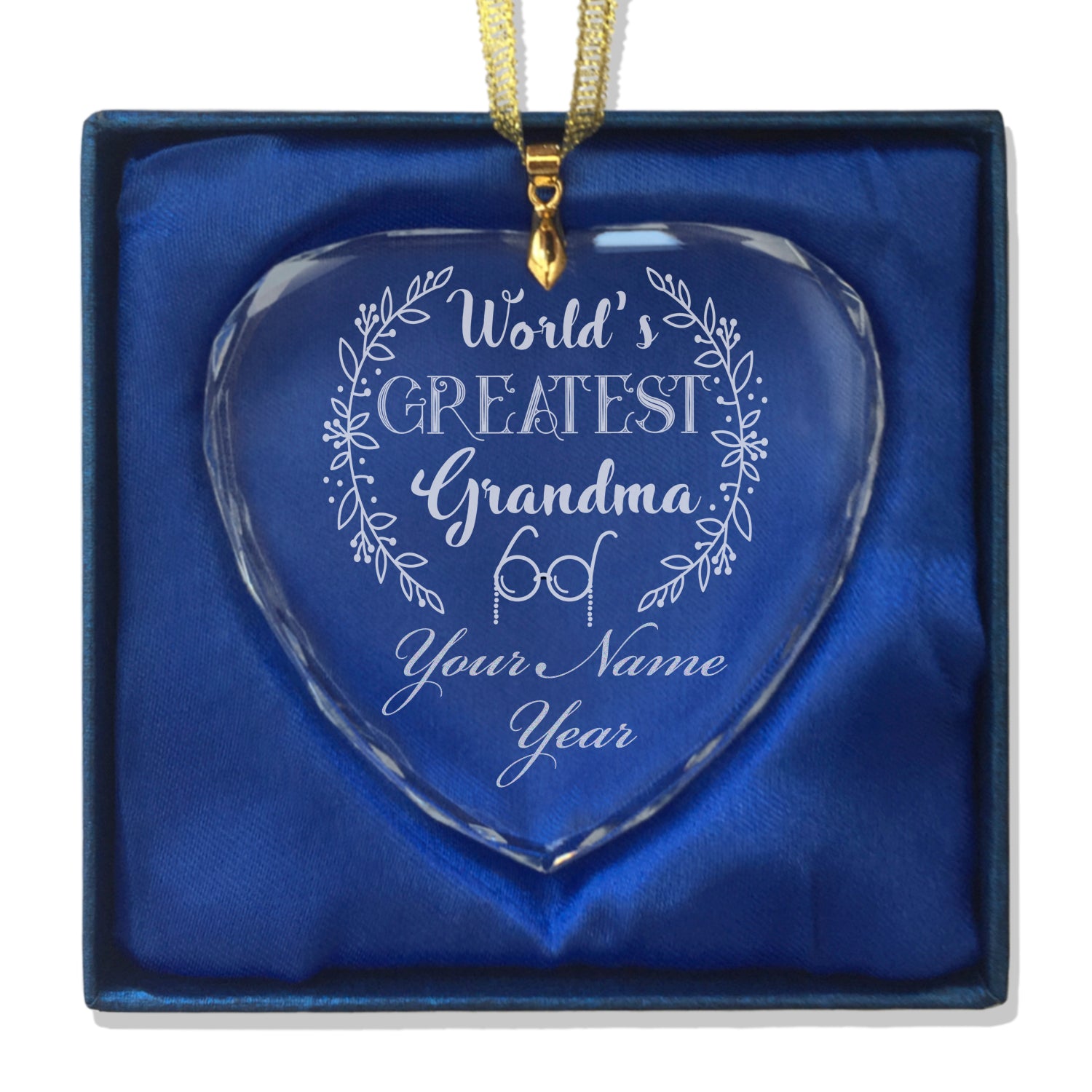 LaserGram Christmas Ornament, World's Greatest Grandma, Personalized Engraving Included (Heart Shape)