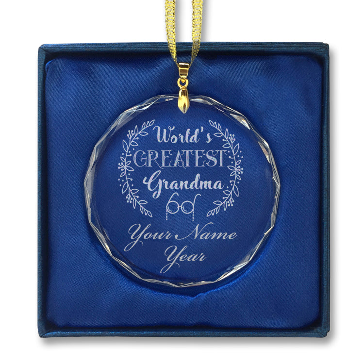 LaserGram Christmas Ornament, World's Greatest Grandma, Personalized Engraving Included (Round Shape)