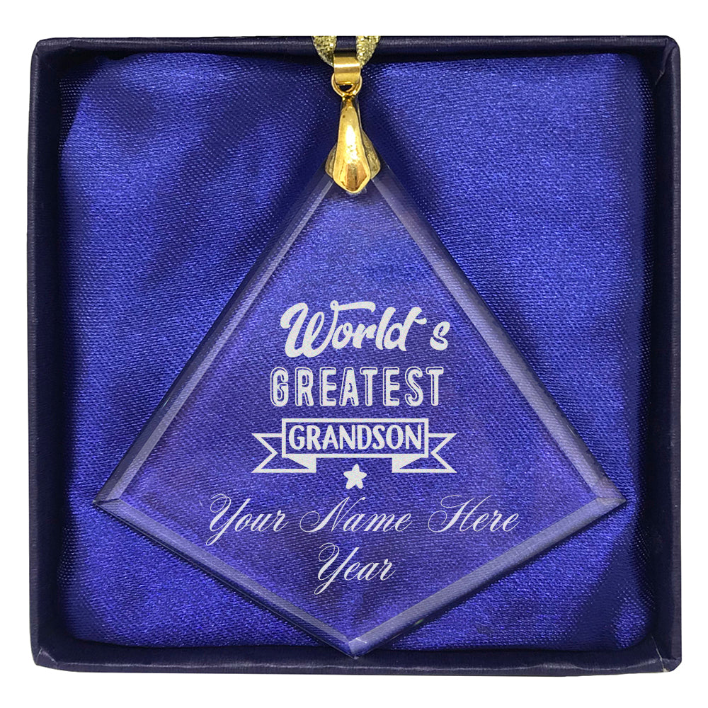 LaserGram Christmas Ornament, World's Greatest Grandson, Personalized Engraving Included (Diamond Shape)