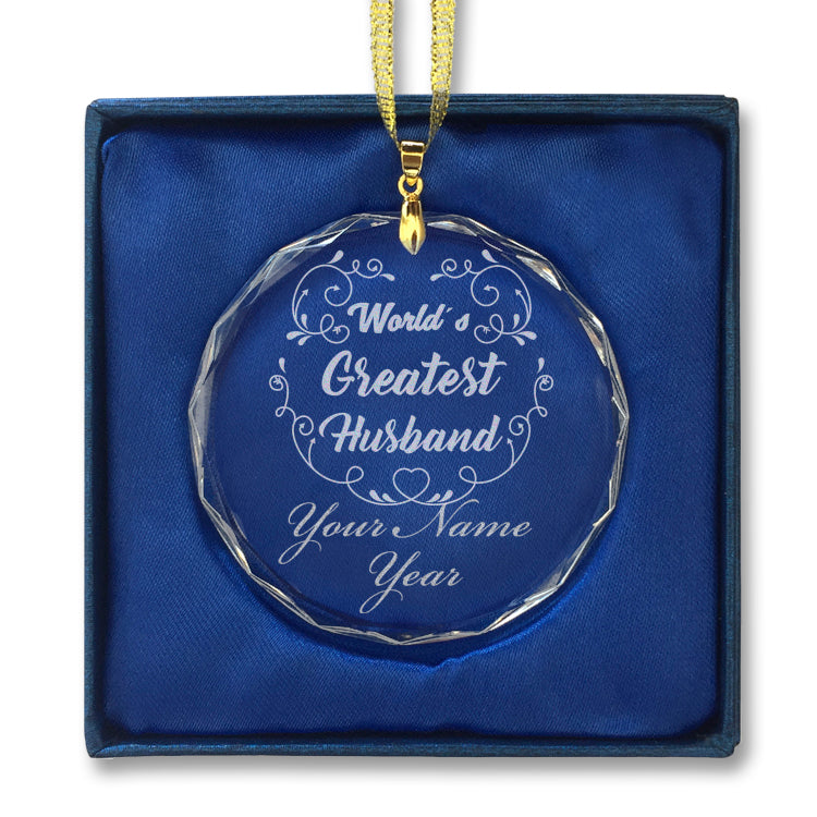LaserGram Christmas Ornament, World's Greatest Husband, Personalized Engraving Included (Round Shape)