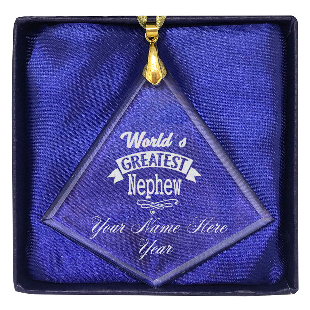 LaserGram Christmas Ornament, World's Greatest Nephew, Personalized Engraving Included (Diamond Shape)