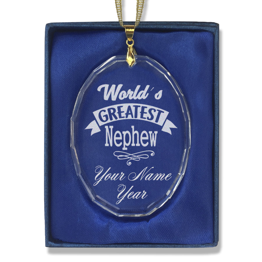 LaserGram Christmas Ornament, World's Greatest Nephew, Personalized Engraving Included (Oval Shape)