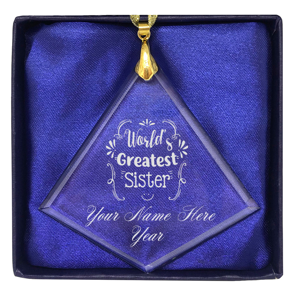 LaserGram Christmas Ornament, World's Greatest Sister, Personalized Engraving Included (Diamond Shape)