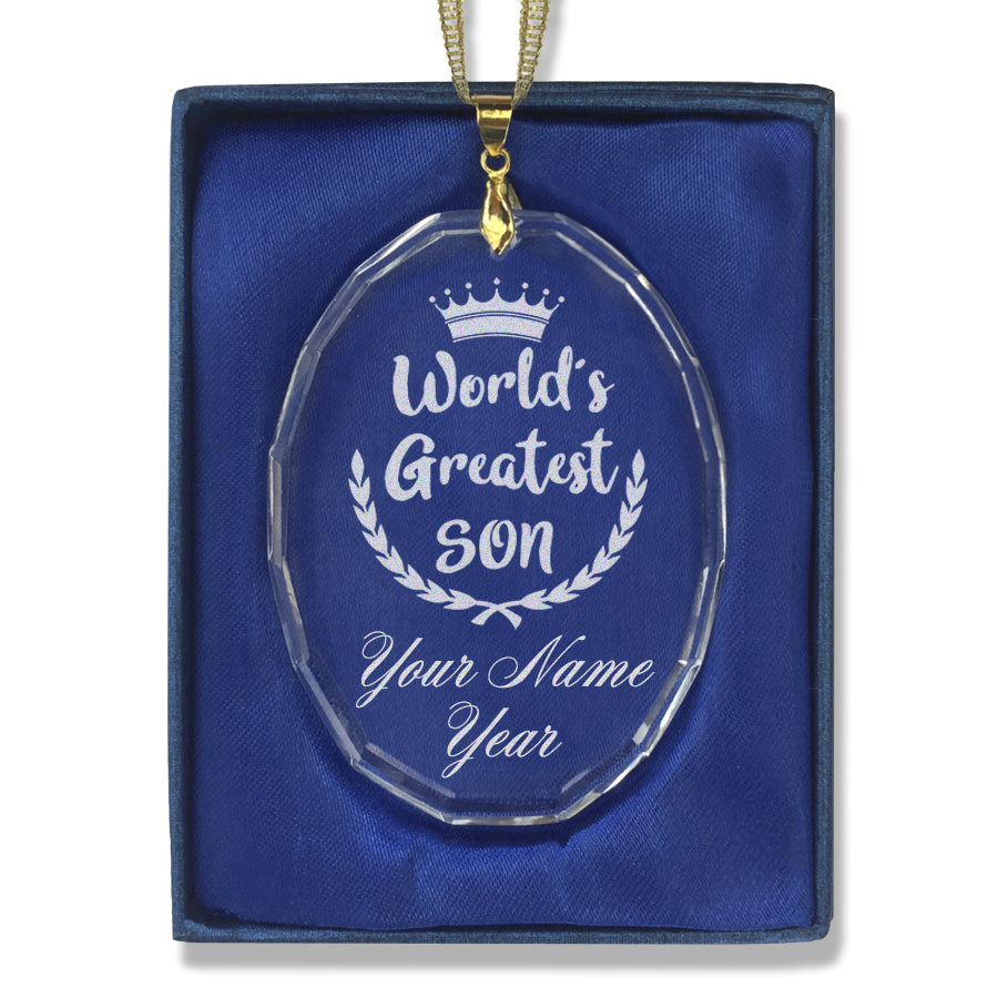 LaserGram Christmas Ornament, World's Greatest Son, Personalized Engraving Included (Oval Shape)