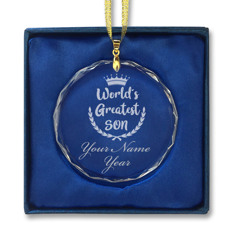 LaserGram Christmas Ornament, World's Greatest Son, Personalized Engraving Included (Round Shape)