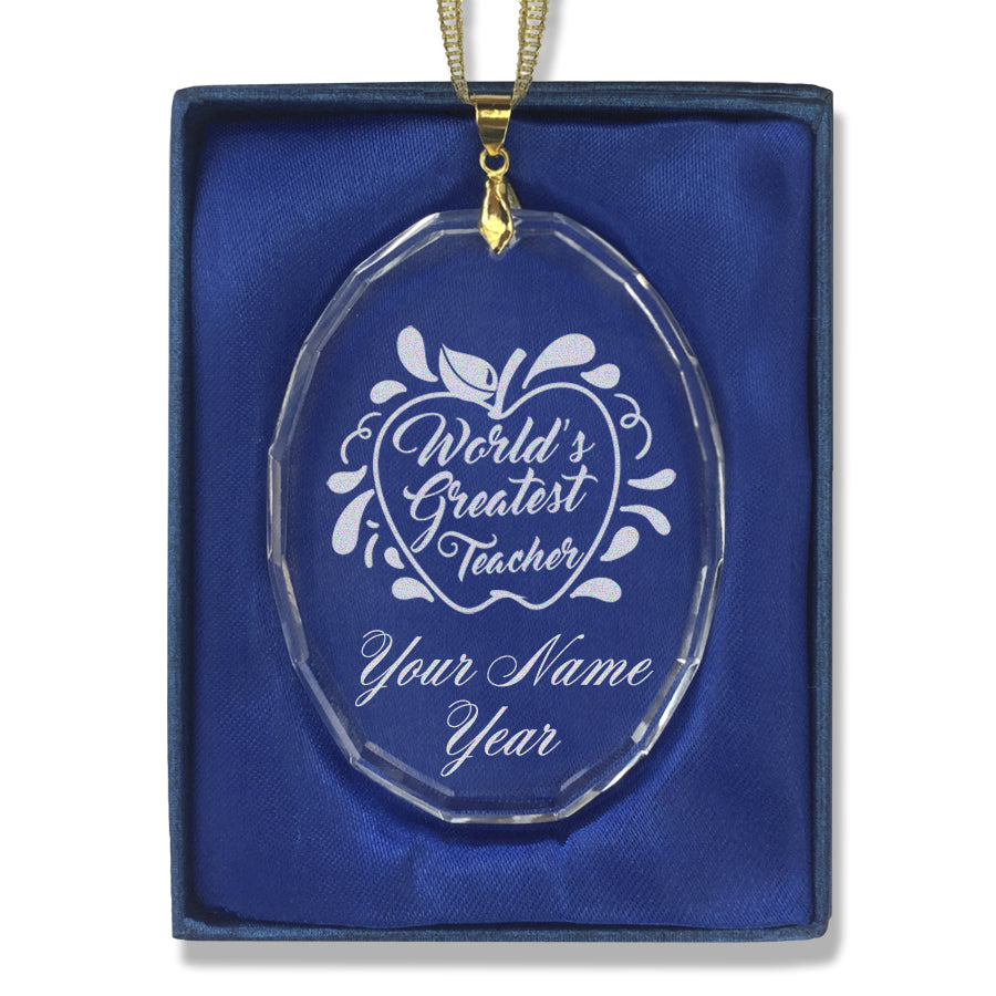 LaserGram Christmas Ornament, World's Greatest Teacher, Personalized Engraving Included (Oval Shape)