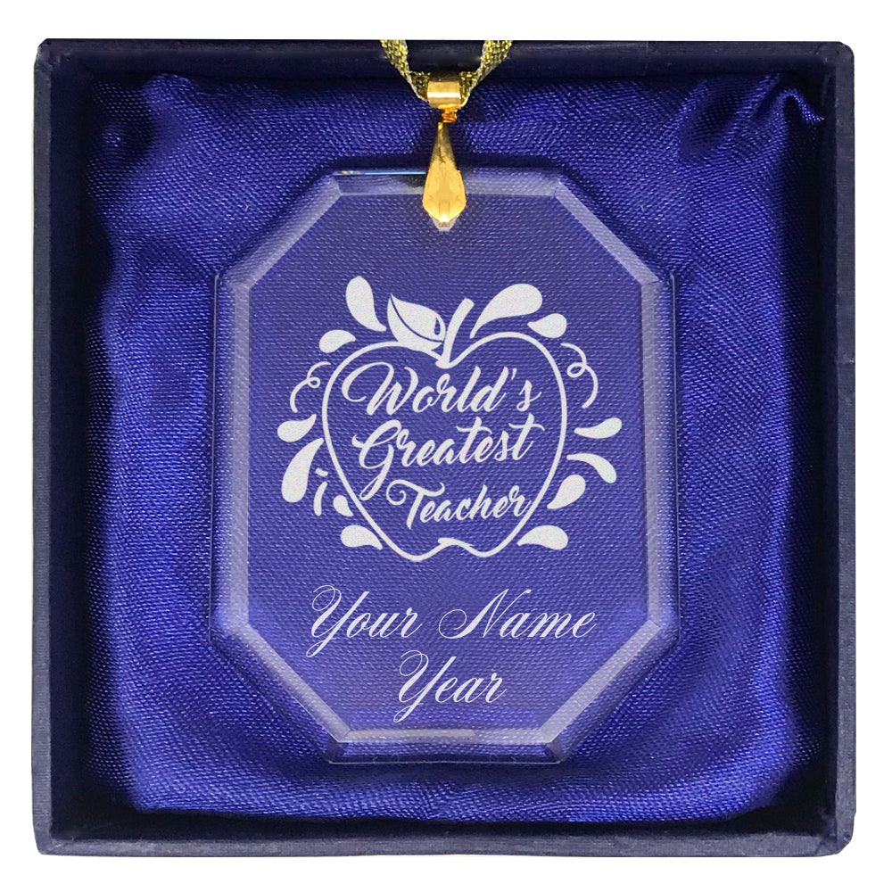 LaserGram Christmas Ornament, World's Greatest Teacher, Personalized Engraving Included (Rectangle Shape)