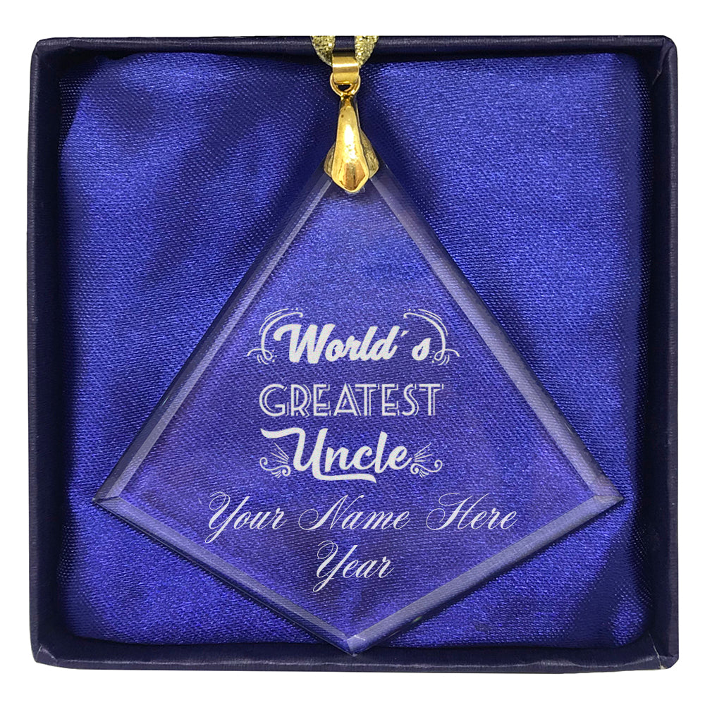 LaserGram Christmas Ornament, World's Greatest Uncle, Personalized Engraving Included (Diamond Shape)
