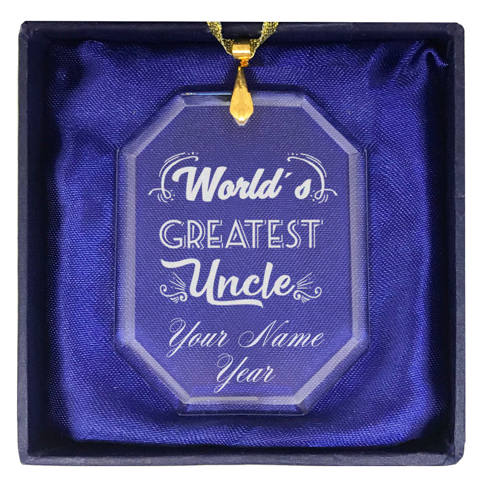 LaserGram Christmas Ornament, World's Greatest Uncle, Personalized Engraving Included (Rectangle Shape)