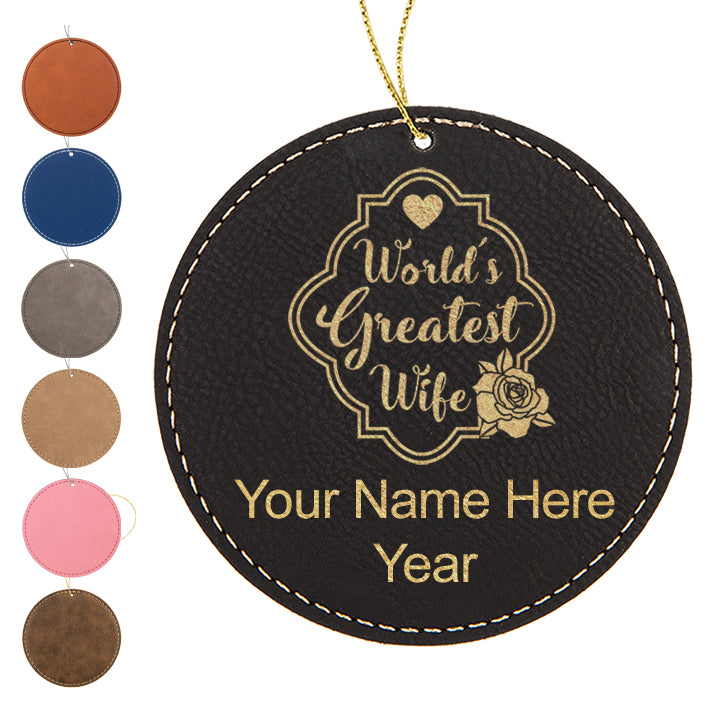 LaserGram Christmas Ornament, World's Greatest Wife, Personalized Engraving Included (Faux Leather, Round Shape)