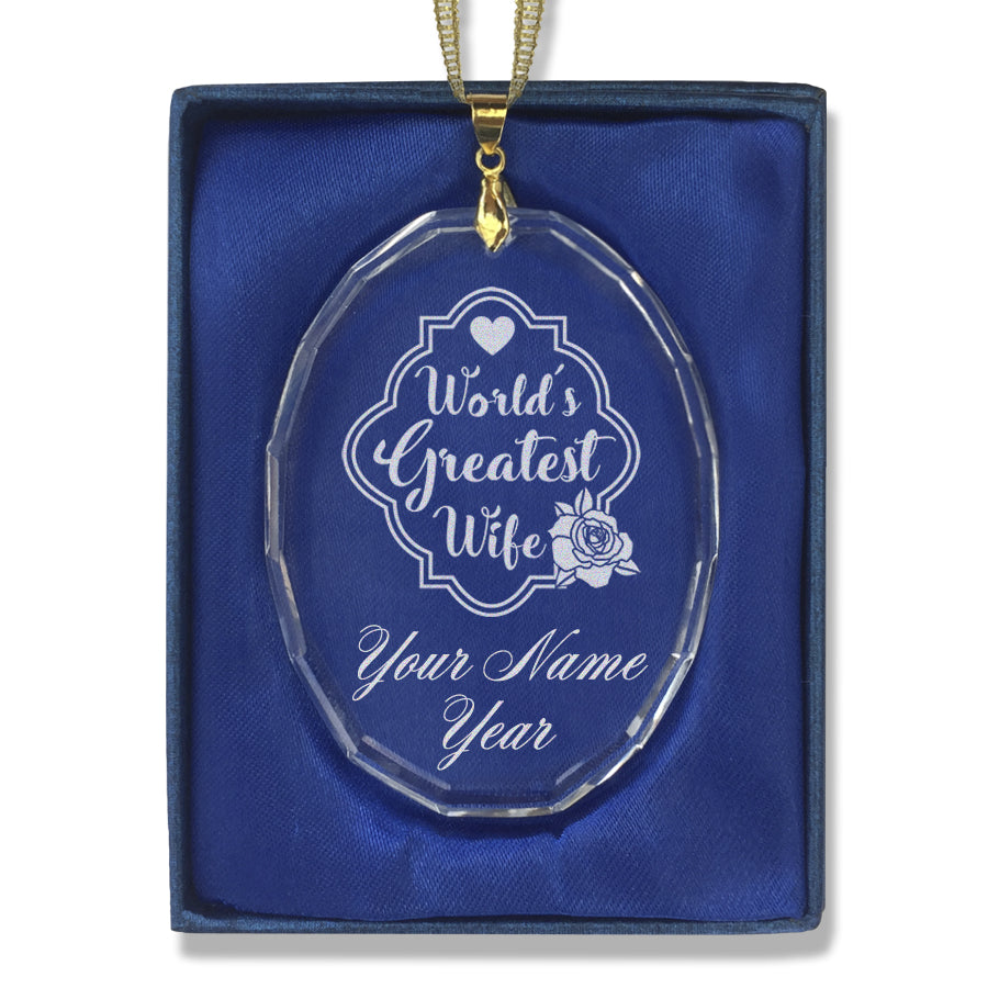 LaserGram Christmas Ornament, World's Greatest Wife, Personalized Engraving Included (Oval Shape)