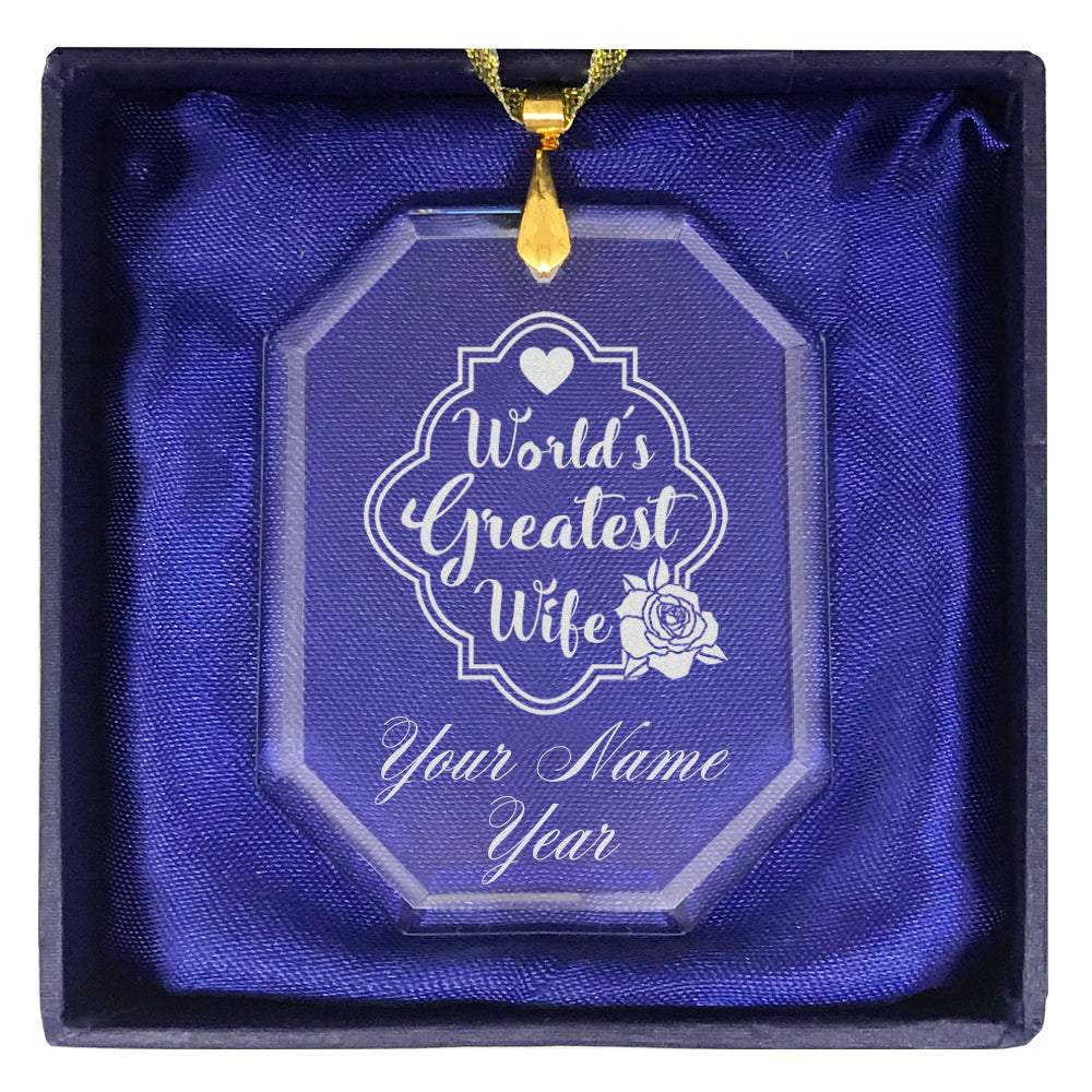 LaserGram Christmas Ornament, World's Greatest Wife, Personalized Engraving Included (Rectangle Shape)